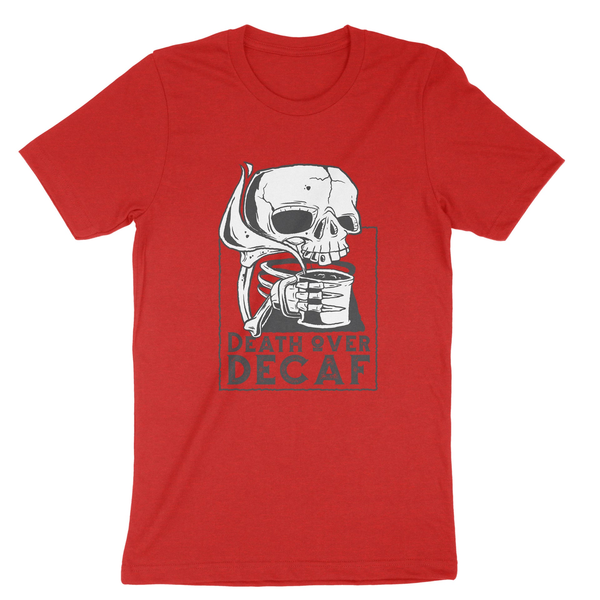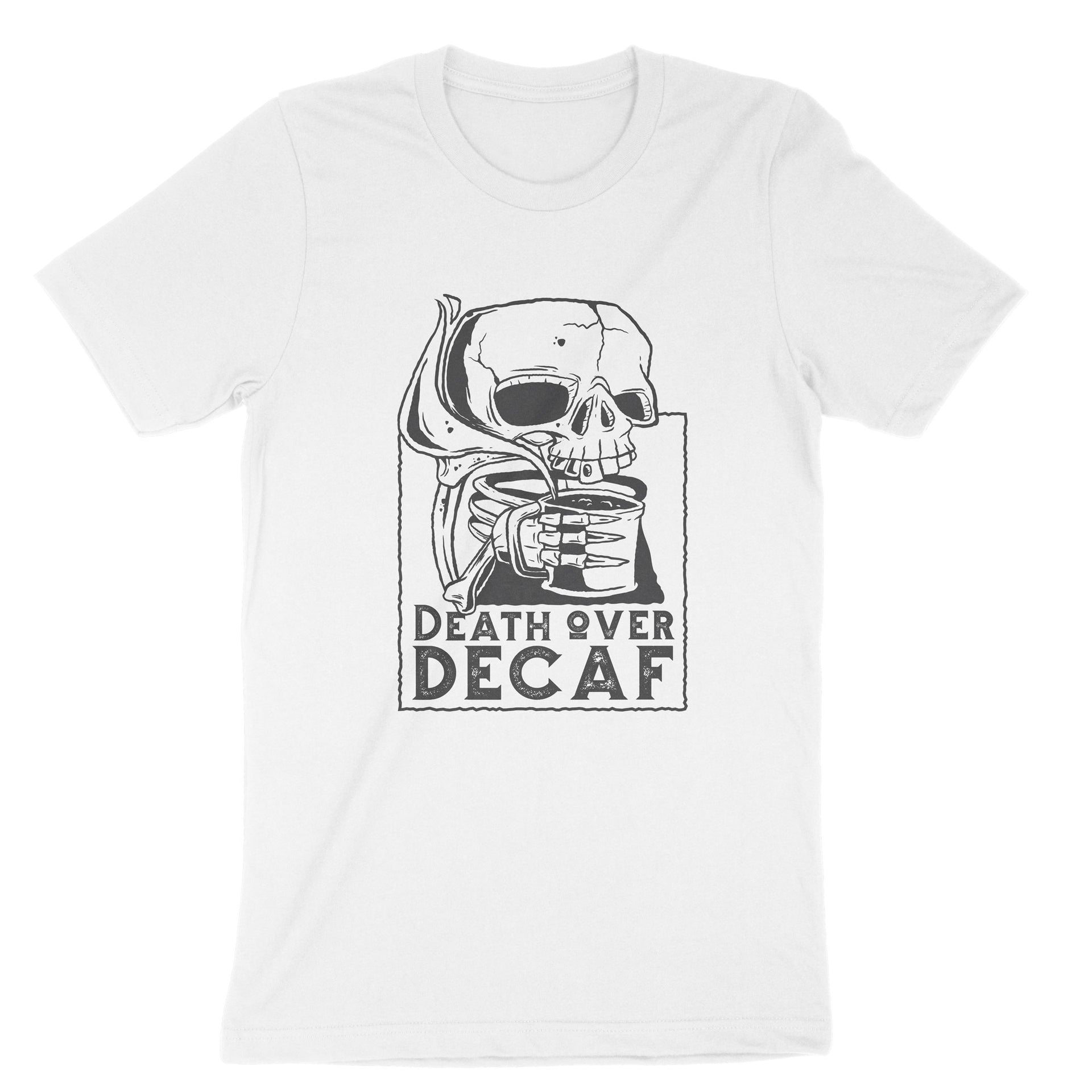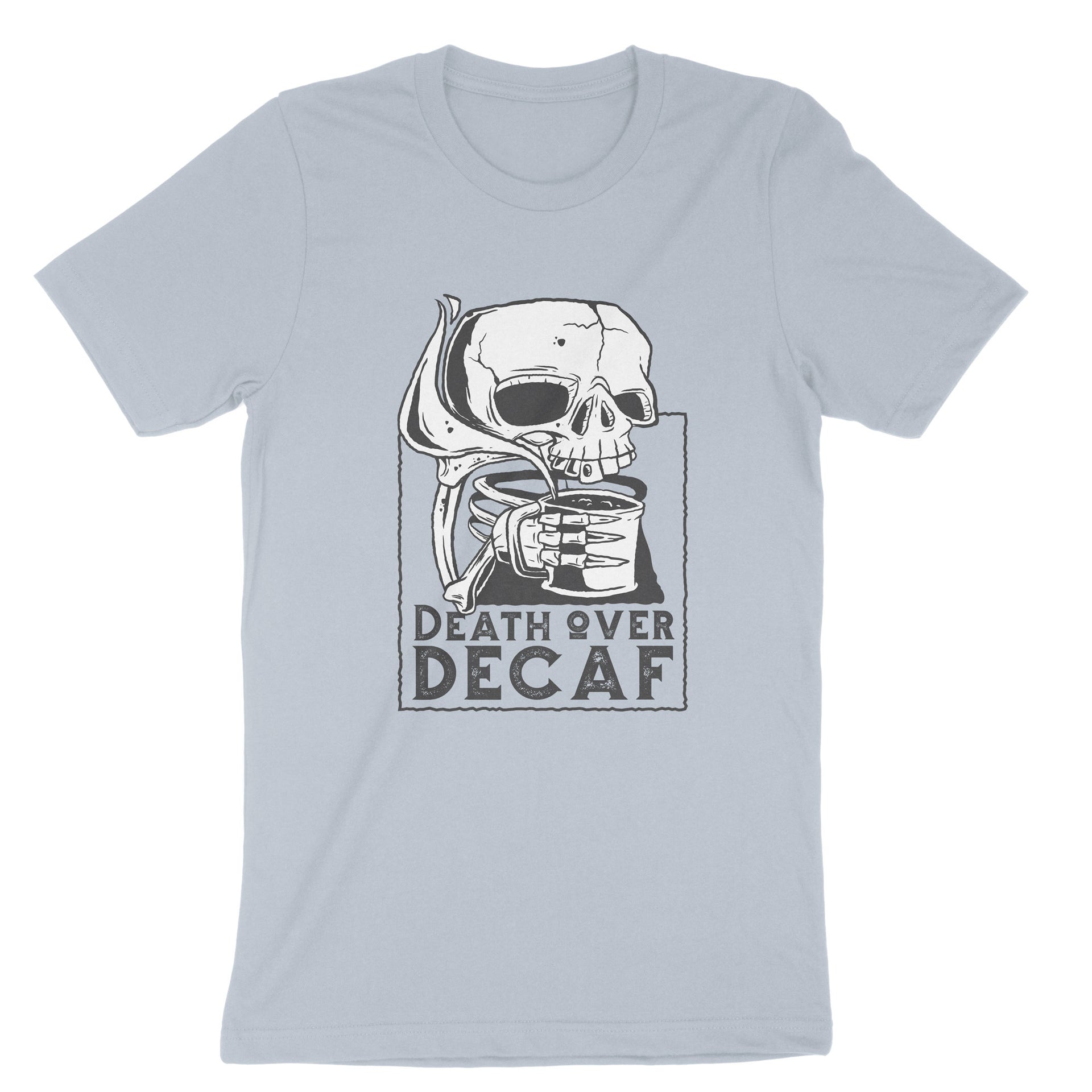 Death Over Decaf T-Shirt, Skull Coffee Tee Shirt
