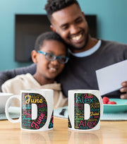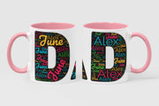 Make dad's day with our Personalized Dad Mug! 🎉 This ceramic mug proudly displays the word "DAD" in big, bold letters, filled with brightly colored word art featuring his very own kid's names.