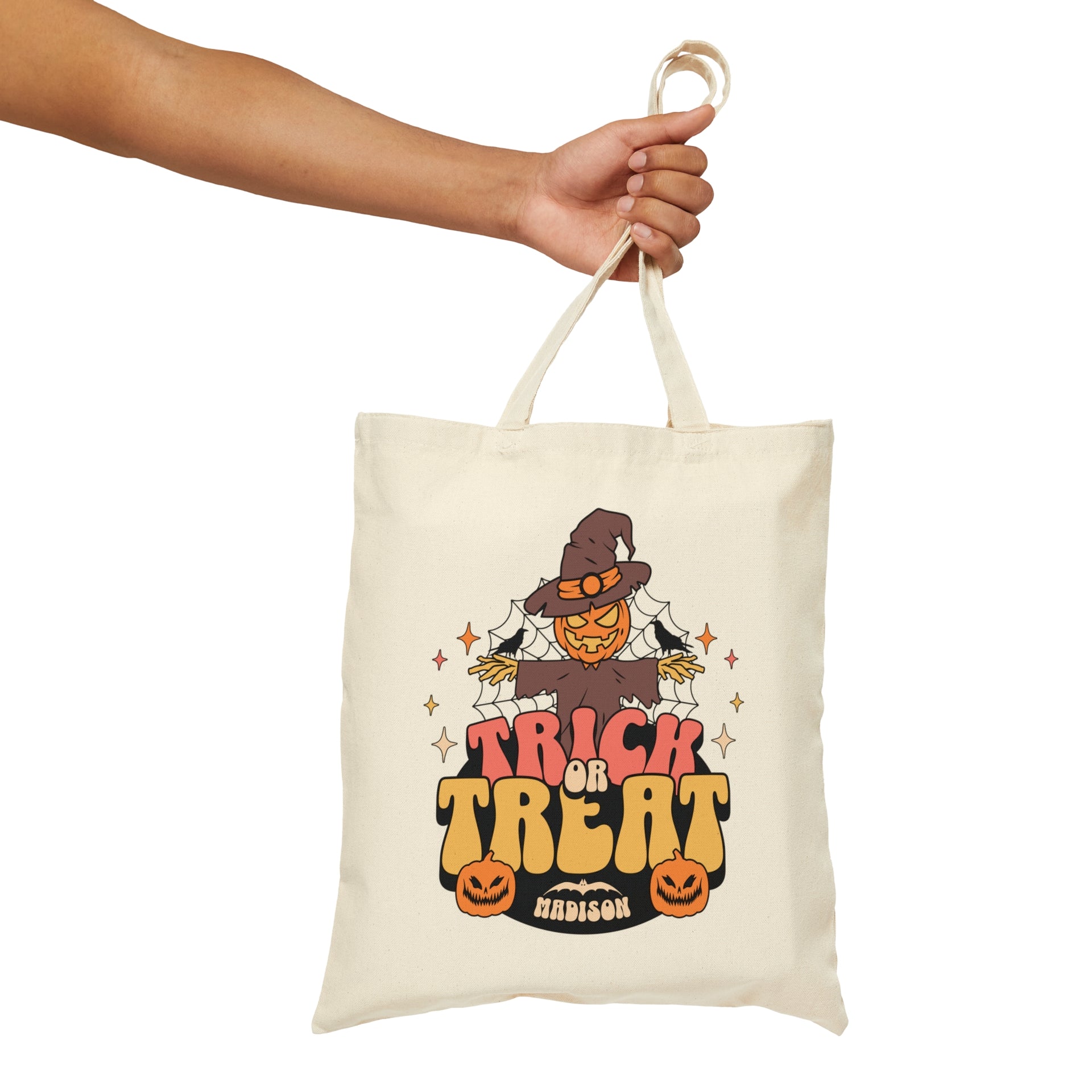 Personalized Halloween Tote Bag, Custom Name Trick-or-Treat Candy Bag